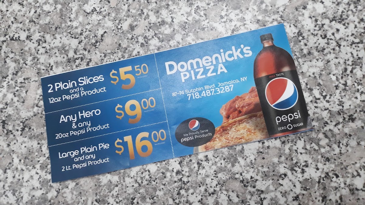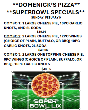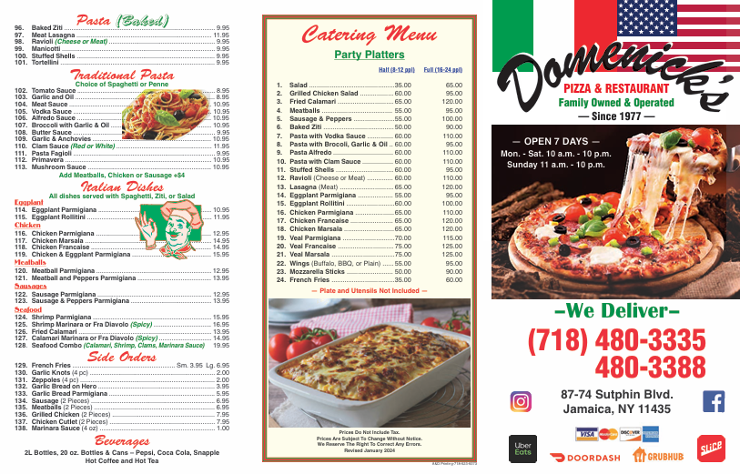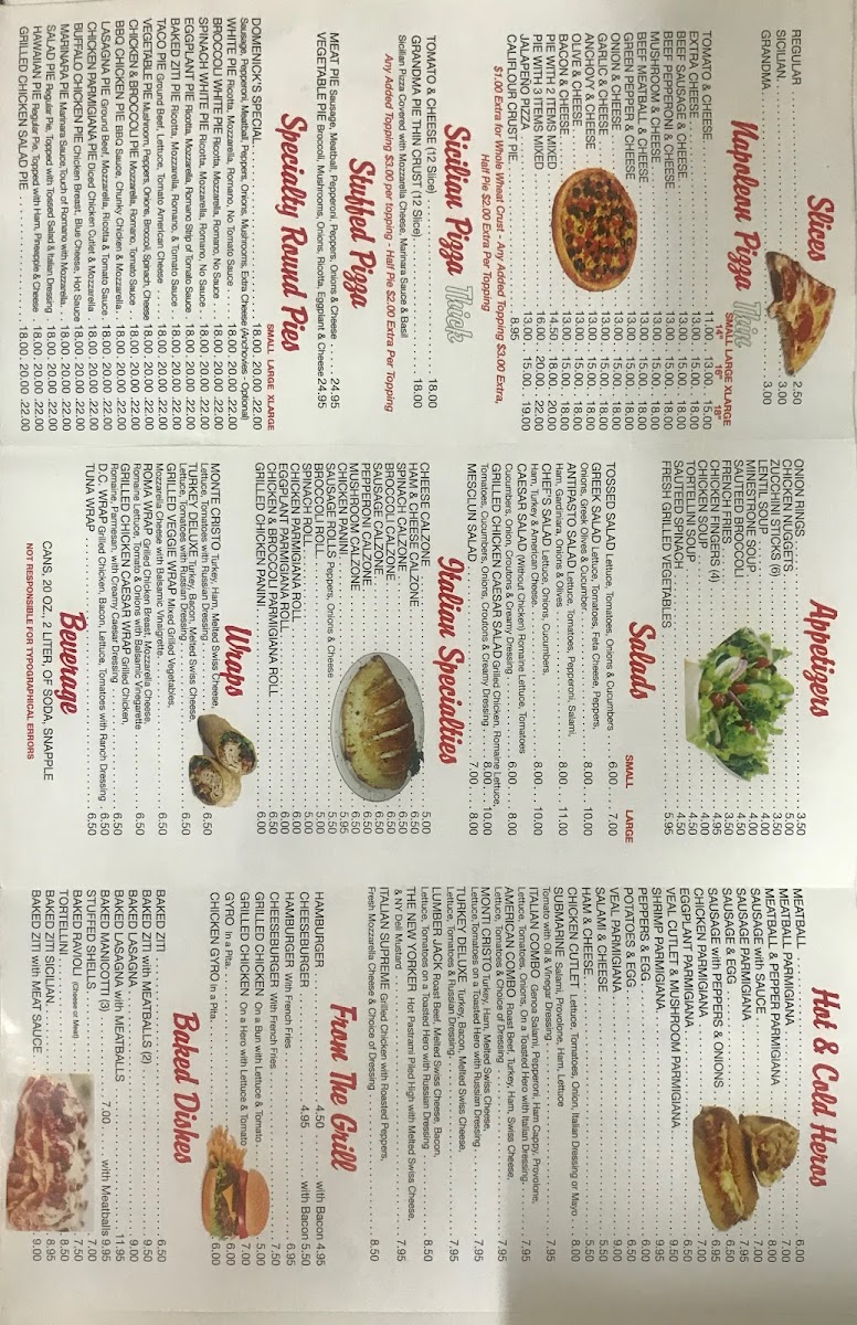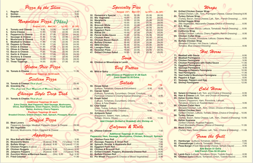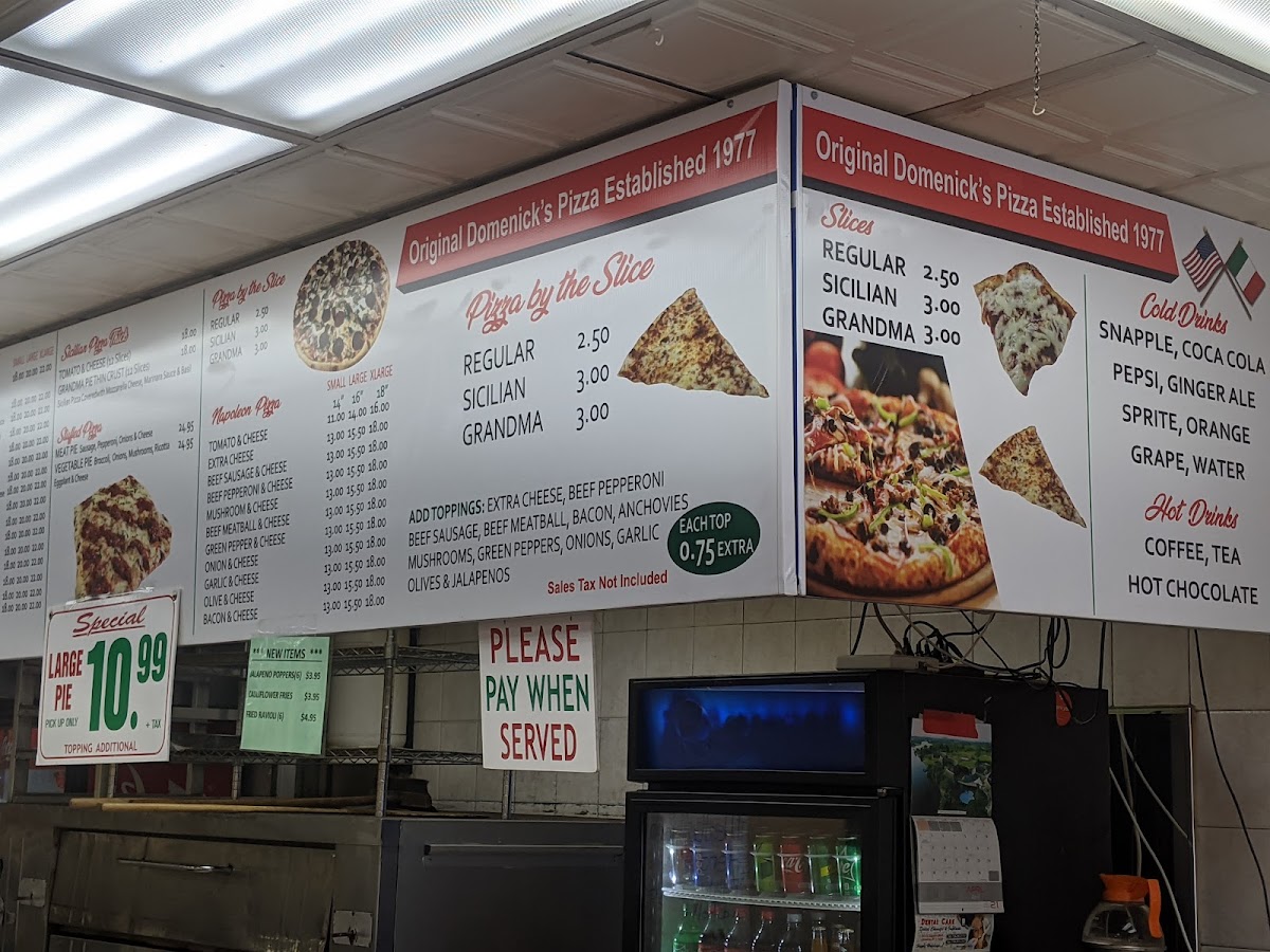 Domenick's Pizza Menu